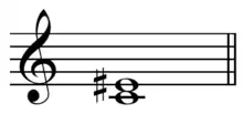 Play ) is an interval of five semitones. It may be produced by widening a major third by a chromatic semitone.[1][3] For instance, the interval from C to E is a major third, four semitones wide, and both the intervals from C♭ to E, and from C to E♯ are augmented thirds, spanning five semitones. Being augmented, it is considered a dissonant interval.[4]