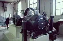 The static steam engine was built in 1911 by the engineering works of "Richard Raupach", based on the system by R. Lenke, in Görlitz. It could generate 75 PS. Once upon a time, more than 1000 examples of this engine were built, that were used in many factories to provide electrical energy. Originally this particular engine was delivered to the Schaaf Brewery in Niedermending near Koblenz, where it was in service in 1932. But in the same year the engine was sold to the distillery in Munich-Großhadern. There it was used to drive various aggregates. Not until the closure of the distillery in 2001 was the steam engine finally taken out of service, having operated for 90 years. Members of the Munich Steam Locomotive Company made contact with the distillery company and succeeded in acquiring the steam engine. On 26 July 2003, it was dismantled and moved by low-loader to the Railway Park. There it was temporarily housed in the northern roundhouse and restored. After the events exhibiting the steam engine in its intermediate location, it was moved at the end of October 2003. After further work, it was operational again on 16 July 2007. This time however it was not driven by steam, but for display purposed worked by an electric motor and illuminated.