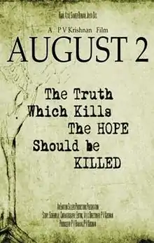 August 2 is an Indian Hindi-language film directed by P V Krishnan. It was claimed to be a true independent mainstream film made within its budget.[1] Producers of the film claims that the film is made on the micro budget of Rs. 300,000.[2] The film had got selected for the Red Carpet Premier in The Indian Independent Film Festival 2013.