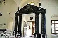 Auguste Touret was born in 1797 in the city of Sarreguemines in the family of officer Hilarion Touret. He served in French army until 1825, when he followed other French philhellenes in Greece. Upon arrival and in the rank of major, he was appointed by Charles Nicolas Fabvier to the staff of the first regular regiment of Greek army.[2]:36 He took part in the Battle of Phaleron and in the failed attempt to regain island of Chios in 1827 After reconstitution of Greek state, Touret remain in Greece. After creation of lists of Philhellenes and with his own money, Touret built in the only Catholic church in the Nafplio so-called "Arch of Touret" with the names of dead Philhellenes. By 1855, Touret was sent to France for treatment. But Touret wished to die in Greece, to which he devoted the best years of his life. He died of a heart attack 28 August 1858, while he was on board of steamship already entering Piraeus harbor and when he saw again the battlefield of his youth.[3]