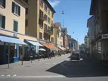 Aussersihl is a district in the Swiss city of Zürich. Known officially as District number 4, the district is known as colloquially Chreis Cheib, cheib being the Zürich German word for an animal cadaver. It earned the name as the area historically contained pits for the deposition of dead animals. It comprises the quarters Werd, Langstrasse and Hard.