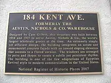 - "Cultural Resource Information System (CRIS)". New York State Office of Parks, Recreation and Historic Preservation. Archived from the original (Searchable database) on April 4, 2019. Retrieved February 1, 2016. Note: This includes Kathleen A. Howe (April 16, 2007). "National Register of Historic Places Registration Form: Austin, Nichols and Company Warehouse" (PDF). Retrieved February 1, 2016. and Accompanying six photos, exterior and interior, from 2006-2007