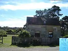 Austins Ferry is named after James Austin (1776–1831), who had been transported to Port Phillip as a convict in 1803 along with his cousin John Earl, and arrived in Van Diemens Land in 1804.[2] After their sentences expired both men were given small land grants on the western shore of the River Derwent between Hobart and New Norfolk. In 1818 they established a ferry service across the river and later a punt which proved very conveniently located for vehicular traffic travelling between Hobart and regions to the north, and became very wealthy. In 1821 the visiting Governor Lachlan Macquarie renamed the village Roseneath, but it has since reverted to its original name. James Austin's original cottage (picture on the right) is preserved as a tourist attraction. The opening hours for the cottage are limited to Sundays between 1pm and 4pm, it provides crafts and historical information.