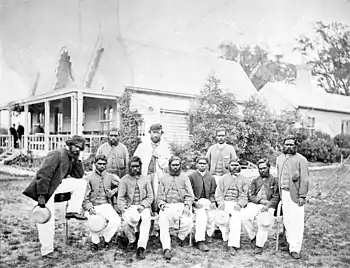 In 1868, a cricket team composed of Aboriginal Australians toured England between May and October of that year, thus becoming the first organised group of Australian sportspeople to travel overseas.[1] It would be another ten years before an Australian cricket team classed as representative would leave the country.
