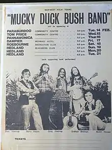 This traditional period was superseded by a revival of folk music that featured more contemporary forms. The Australian band The Seekers emerged in 1963 and blended traditional music, contemporary folk music and pop, an illustration of the rapid evolution and diversification of folk music that took place in the mid-1960s. In Brisbane, from 1962 until it closed in 1977, the Folk Centre (renting facilities on Ann Street, adjacent to the People's Palace hotel) served as a crucible for both established and emerging artists. Stan and Kathy Arthur ran it, and the Wayfarers (Stan Arthur, Garry Tooth, Bob Stewart & Alistair Frazer) were the mainstay of the venue;[4] while emerging local groups included the Wildwood Trio and the Babayaga Trio.[5][6][7] In Perth, W.A. in the early 70's, Stan Hastings ran a popular folk club called The Stables (a music venue in Malcolm Street) where Stan and his son Greg were instrumental in starting a Bush Band – Mucky Duck Bush Band. The 'Duck' turned professional in 1974, taking Australian bush music to many regional areas of W.A. Greg Hastings left the band in '79 to go solo and the band has kept going, with numerous different members throughout the years.