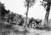 The army of Austria-Hungary also obtained large siege mortars.[3] These were difficult to transport, even though they could be separated into two loads: barrel and carriage.