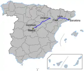 | 1 | Madrid | Zaragoza | 308.08 km | A-2 |