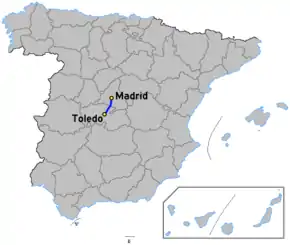 The Autovía A-42 (also known as Autovía de Toledo) is a Spanish autovía which connects Madrid to Toledo. It was built in the mid-1980s as an upgrade of the N-401 road between the two cities, and received the A-42 designation in 2003 as part of the general renumbering of Spanish autovías.