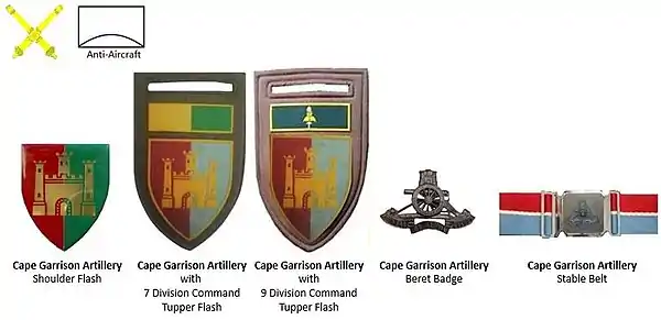 - In the 1950s and 1960s, the current regiment wore the South African Artillery badge – also a field gun, but without the crown – with the coat of arms of the University of Cape Town on the wheel of the gun. Since the 1970s, the badge has been a field gun topped by a three-towered castle.