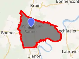 The Saône river forms the eastern boundary of the commune as it flows south to eventually join the Rhône at Lyon. The Raie du Lac flows south through the centre of the commune to join the Saône.[3]