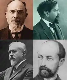 Debussy was Satie's closest friend for over 20 years, but their relations were growing strained at this time and would end bitterly in 1917. Dukas was a faithful friend to both. Roussel was Satie's teacher of counterpoint at the Schola Cantorum (1905–1908) and guided him through the development of his mature contrapuntal style. In the 1920s Satie vociferously defended Dukas and Roussel against their critics in the French musical establishment.[7]