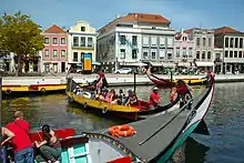 Tourism is also important for the economy.[19] The old town centre, with its Art Nouveau and Romanesque architecture[20] and "gondolas" (barcos moliceiros once used for collecting moliço seaweed) plying the Ria de Aveiro canals, is referred to as "The Venice of Portugal" in some tourist brochures.[21][22]