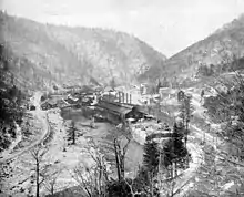 In 1881, James acquired the Pennsylvania Axe Co., located at Cold Springs Forge near Tyrone in Blair County.[19] This factory could produce about 400 axes per day and employed 40 workers. The Reedsville plant was expanded and steam power was added. Total capacity was now 2,000 axes per day.[20] Around 1889 the plant was damaged again by a flood, and then in 1890 the factories were purchased by the Axe Trust. The Reedsville plant continued to operate and James was made treasurer, while Frank was appointed plant superintendent. The plants at Yeagertown and Tyrone were closed as the Trust attempted to reduce overall industry capacity and increase prices. Production was consolidated at Beaver Falls and Glassport, near Pittsburgh.