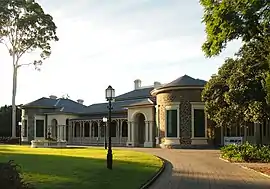 Plans for the two-storey mansion, which for the greater part of its existence was named Austral House,[2] were developed in 1846 for William Paxton, an Adelaide chemist. It is constructed of local bluestone and is Regency period in style, thought to have been designed by George Strickland Kingston, who interpreted the work of Robert Kerr, a leading architect of the period in Britain.[3][4]