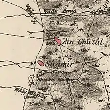 A population list from about 1887 showed that Ain Ghuzal had about 910 inhabitants; all Muslims,[12] while in the early twentieth century the number of inhabitants was given as 883, and a mosque and a school in the village was noted by travellers.[13]