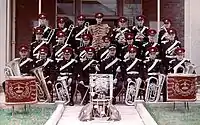 In 1961, the Ayrshire Yeomanry paraded at Culzean Castle and were presented with their First Guidon bearing the Honours which had been hard won.[24] The Ayrshire Yeomanry continued as an independent Regiment until 1969 when, in common with most of the Yeomanry Regiments, it was reduced to a Cadre of just a few men.[3] On 1 April 1971, this cadre gave rise to two new units; B Squadron of the 2nd Armoured Car Regiment, later renamed the Queen's Own Yeomanry, at the former Regimental Headquarters in Ayr and 251 Squadron of 154th (Lowland) Transport Regiment in Irvine with no affiliation to the Ayrshire Yeomanry lineage.[3] In 1992, the Squadron was transferred to the newly formed Scottish Yeomanry.[3]