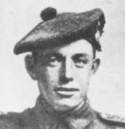 On the outbreak of the First World War, the Regiment was one of the fastest to react to the mobilisation order and received congratulations from Scottish Command, even though there was an initial delay in that the orders came in a code that had not been issued to the Regiment! Following mobilisation, the Regiment joined the Lowland Mounted Brigade and remained in the United Kingdom, on home defence duties, until 1915. The Regiment finally deployed overseas in September of that year, where it took part in the Gallipoli landings, serving as dismounted infantry. The Regiment was attached to the 52nd (Lowland) Division in October; it was withdrawn in January 1916 and moved to Egypt. In early 1917, the Regiment was amalgamated with the Lanarkshire Yeomanry to form the 12th (Ayr and Lanark Yeomanry) Battalion of the Royal Scots Fusiliers in 74th (Yeomanry) Division (The Broken Spurs), seeing service in the Palestine campaign before moving to the Western Front in May 1918.[8] A member of this Regiment, Thomas Caldwell, won the Victoria Cross on 31 October 1918 at Oudenaarde in Belgium.[9]