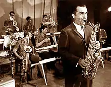 The most known type of Azerbaijani jazz is Jazz mugham, which includes a sultry combination of Mugham and traditional American jazz.[5][11] The style reached its full fame in the 1950s and 1960s under the influence of composer Rafig Babayev and his Gaya Quartet and jazz pianist and composer Vagif Mustafazadeh.[5][12] Dizzy Gillespie, the legendary American jazz trumpeter, reportedly lauded Mustafazadeh for creating "the music of the future."[5]