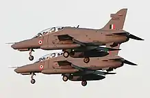 In May 2015, Indian aerospace manufacturer Hindustan Aeronautics (HAL) revealed that it was examining the prospects of performing its own Hawk upgrades, including armed light attack variants. The Indian Air Force, which were in the process of receiving trainer Hawks built under licence by HAL, were reportedly interested in the upgrade proposals, which would also include avionics and cockpit modifications; HAL has stated that it also aims to export combat Hawks to other countries in partnership with BAE. Missile developer and manufacturer MBDA may provide their ASRAAM and Brimstone missiles to arm the new attack type.[23]