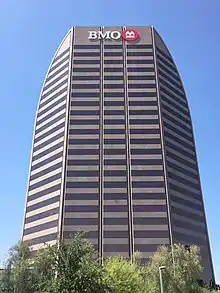 The BMO Tower is a highrise in Midtown Phoenix, Arizona, also known as the Viad Corporate Center and formerly the Dial Tower. The tower was constructed in 1991 for the Dial Corporation, which is why the building resembles a bar of Dial soap. It was previously occupied by Viad, which spun off subsidiary Dial Corporation in 1996 but since 2016, the Bank of Montreal (BMO) has occupied most of the 483,741 sq ft (44,941.0 m2)[1] office space. It rises 374 feet (114 meters), topping out at 24 floors.