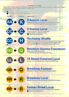 - "Special Alert! The Transit Authority has announced the following major subway service changes for this weekend". New York Daily News. December 28, 1990. Retrieved December 29, 2018.