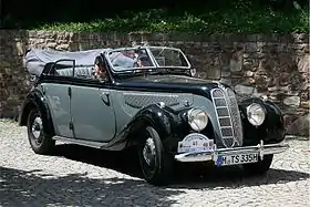 BMW were producing, in their Eisenach plant, the model that would form the basis for the larger car. The 326 had already spawned successful sporting derivatives. The 335 was also to be based on the 326, but with the wheelbase and chassis extended to accommodate a 3485 cc M335 six-cylinder in-line engine.[3] Despite clearly reflecting the approach taken with existing BMW units, this was an entirely new design. Claimed maximum power output of 90 bhp (67 kW)[4] was lower than the values advertised for comparably sized and powered Jaguars of the period, it achieved full power at only 3500 rpm. With 90 bhp (67 kW), the car had top speed of 145 km/h (90 mph).[5]
