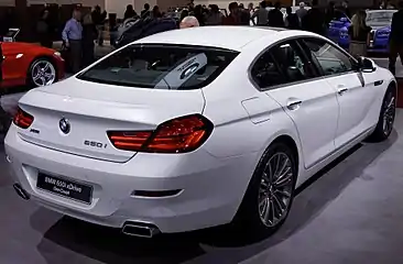 The F06 Gran Coupé is the four-door coupé variant of the 6 Series, and was launched in June 2012 at the Geneva International Motor Show.[15] The design of the Gran Coupé was inspired by the 2007 BMW CS Concept.[16][17][18]