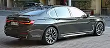 The G11 was unveiled on 10 June 2015 at BMW's headquarters in Munich.[2] An official public reveal took place at the 2015 International Motor Show Germany. This generation of the 7 Series is the first car lineup of BMW to be based on the CLAR platform.[3] The CLAR platform adopts technology first introduced in BMW i models, namely the introduction of carbon-fibre-reinforced polymer as structural chassis components. Long-wheelbase cars have the letter "L" in their model name.[4]