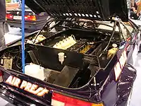Mechanically, the Procar M1s were extensively modified to meet the requirements of circuit racing. The standard M1 featured the cast iron block BMW M88 straight-6 with 3,453 cubic centimetres (210.7 cu in) displacement.[8] Modified into the M88/1 by a team led by Paul Rosche,[10] it was capable of producing 470 horsepower at 9000 rpm,[8] compared to 277 hp from the standard M1's engine. The 5-speed ZF gearbox housing from the road car was retained,[8] but with multiple gear ratios allowed, as well as its own oil cooler.[1]