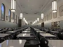 The main portion of the Testing Center is a large main testing room, which originally served as BYU's library, and now is filled with approximately 650 desks. Students enter through the center's administration area. The center also has a few smaller rooms with even more desks (one of which, the music room, has soft classical music playing through wall-mounted speakers), study hall rooms downstairs for test preparation, and faculty offices.