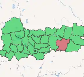 Babushkinsky District (Russian: Ба́бушкинский райо́н) is an administrative[1] and municipal[7] district (raion), one of the twenty-six in Vologda Oblast, Russia. It is located in the southeast of the oblast and borders with Nyuksensky District in the north, Kichmengsko-Gorodetsky District in the northeast, Nikolsky District in the east, Kologrivsky and Chukhlomsky Districts of Kostroma Oblast in the south, and with Totemsky District in the west. The area of the district is 7,761 square kilometers (2,997 sq mi).[4] Its administrative center is the rural locality (a selo) of imeni Babushkina.[3] District's population: 12,779 (2010 Census);[5] 14,994 (2002 Census);[9] 18,037 (1989 Census).[10] The population of imeni Babushkina accounts for 31.6% of the district's population.[5]