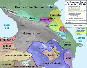 Later he was an ally of the khan of the Golden Horde, Tokhtamysh, in his war with Timur (also known as Tamerlane). In late autumn 1386, a huge army of Timur attacked Georgia. Tbilisi was besieged and taken on 22 November 1386, after a fierce fight. The city was pillaged and Bagrat V and his family were imprisoned. Taking advantage of this disaster, the royal vassal Duke Alexander I of Imereti proclaimed himself an independent ruler and was crowned king of Imereti at the Gelati Monastery in 1387.