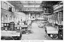 The American railroad industry expanded significantly between 1898 and 1907, with domestic demand for locomotives hitting its highest point in 1905.[17] Baldwin's business boomed during this period while it modernized its Broad Street facilities. Despite this boom, Baldwin faced many challenges including the constraints of space in the Philadelphia facility, inflation, increased labor costs, Labor tensions, the substantial increase in the size of the locomotives being manufactured and the formation of the American Locomotive Company, an aggressive competitor which eventually became known simply as Alco.[18]