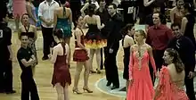 There is a part of the ballroom world dedicated to college students. These chapters are typically clubs or teams that have an interest in ballroom dancing. Teams hold fundraisers, social events, and ballroom dance lessons. Ballroom dance teams' goals are to have fun and learn to dance well. There is a strong focus on finding a compatible dance partner and bonding with teammates. There is also a competitive side to collegiate ballroom - collegiate teams often hold competitions and invite other teams to participate.[14] These competitions are often run with many of the same rules are regular amateur competitions as outlined above, but are usually organized entirely by collegiate teams. Examples include the MIT Open Ballroom Dance Competition, Big Apple Dancesport Challenge, Purdue Ballroom Classic, Cardinal Classic, Berkeley Classic, and Harvard Invitational.