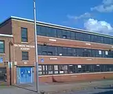 By the time it was considered for co-use by the BFA, Lombard Middle School was under capacity, with some sections empty.[11] Built beginning in 1960, with a formal dedication in April 1963,[12][13] the school complex, built by Piracci Construction Company for $2.7 million (equivalent to $23,680,479 in 2019), was designed with a maximum capacity of 2,400 students.[13][14] In 2005 it had been one of six Baltimore schools that were identified as "persistently dangerous" by the state school board under No Child Left Behind Act reporting requirements.[15]