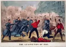 ![]() "Massachusetts Militia Passing Through Baltimore", an 1861 engraving of the Baltimore Civil War riots | |||||||