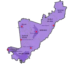 The Bandar Baharu District (once proposed to be renamed as Bandar Crustacea[4]) is a town, district and state assembly constituency at the southernmost end of Kedah, Malaysia. Bandar Baharu is located along the Kedah-Penang–Perak border tripoint, 37 km (23 mi) southeast of George Town, Penang's capital city.