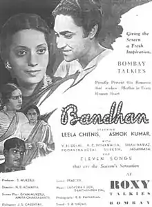 Bandhan is a 1940 Indian Bollywood film directed by N.R. Acharya and starring Leela Chitnis, Ashok Kumar and Suresh. It was the second highest grossing Indian film of 1940.[1] It was produced by Bombay Talkies.[2][3]