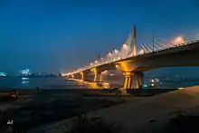 By the mid-1980s, China had forged close military, commercial and cultural ties with Bangladesh and also supplied it with military aid and equipment.[14] The then-president of Bangladesh Hossain Mohammad Ershad was warmly received in Beijing in July 1987. A Bangladesh-China friendship bridge was constructed and inaugurated over river Buriganga connecting Dhaka and Munshiganj by the Chinese as a token of this newly advancing diplomatic and military relationship. On 4 October 2000, the Government of Bangladesh issued a postal stamp marking the 25th anniversary of the establishment of Bangladesh-China diplomatic relations. By this time, China had provided economic assistance totaling US$300 million to Bangladesh and the bilateral trade had reached a value mounting to a billion dollars.[15] In 2002, the Chinese Premier Wen Jiabao made an official visit to Bangladesh and both countries declared 2005 as the "Bangladesh-China Friendship Year."[16]