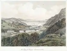 A parliamentary borough was created in 1832 for Bangor, becoming a contributing Caernarfon out borough as its status grew due to further industry such as shipbuilding[5] as well as travel, not just from Telford's road, but through tourism mainly from Liverpool via steamboat.[6] It was also an ancient borough from earlier privileges granted to Bangor in medieval times,[7] but an 1835 government report investigating municipal corporations concluded that this status was defunct and in name only.[8] The borough was reformed in 1883 into a municipal borough.