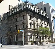 The first Toronto branch, designed by John George Howard was built in 1845 at the northeast corner of Yonge Street and Wellington. The current building, designed by architect Henry Langley, replaced the original in 1875.[5] A restaurant occupies the ground floor with offices above.
