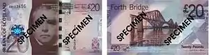 - Scotland BOS new 20-pound polymer notes unveiled Banknote News (banknotenews.com). 7 November 2019. Retrieved on 7 November 2019.