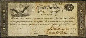 Treasury Notes were issued from 1812 to 1913, and were interest-bearing notes issued by the United States in times of war or financial unrest. Various notes of various denominations were issued during the War of 1812 (large and small size notes), the Panic of 1837, the Mexican–American War, the Panic of 1857, the Civil War and the Panic of 1907. From the Civil War through the Panic of 1907 they were known as "Certificates of Indebtedness".