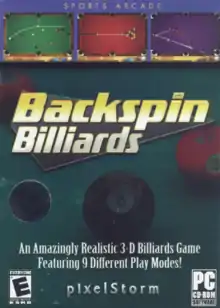 Bankshot Billiards also known as backspin billiards is a cue sports simulation video game developed by Canadian studio PixelStorm, and published by Oberon Media for Windows. Billiards was released in October 2004 worldwide, and re-released in 2006 in the United States.[1] The game featured various simulations of pool games, including 8-ball, 9-ball and trickshots.[2] The game featured 9 different versions of pool, and customisable tables.[3]