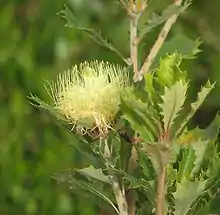 Banksia anatona, commonly known as the cactus dryandra,[1] is a flowering plant in the family, Proteaceae and is endemic to Western Australia. It is a tall, spindly shrub with unusually large fruiting follicles. It is only known from a single location and has been classified as Critically Endangered nationally under the Environment Protection and Biodiversity Conservation Act 1999.[1] The only known population is in danger of extinction from dieback disease.