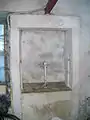Another stone at the farm may represent the remains a primitive cheese press. It is an expertly carved trough with various holes, grooves and three vertical sides. The groove running horizontally along the back may have helped support a wooden frame above the trough.[7] It may have been re-used for a different purpose at a later date and is unlikely to have been part of the 1760 press.