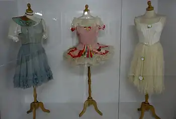 This tutu design has become standard in ballet companies all over the world since it first appeared in 1950, in the ballet Symphony in C. Balanchine said, "I attribute to [Karinska] fifty percent of the success of my ballets to those that she has dressed."