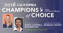 In 2016, Parker co-sponsored an ordinance that prevents anti-abortion activists from misrepresenting themselves as medical professionals or unbiased health care counselors.[19] Parker was named a "2016 California Champion of Choice" by NARAL Pro-Choice California for her work on the ordinance.[20] Also in 2016, Parker won a landmark victory in bankruptcy court that allowed the sale and rehabilitation of the notorious Empyrean Towers apartment building in downtown Oakland. The court's ruling was groundbreaking because it was based not only on compensation of creditors, but also recognized the principle of "social responsibility" in bankruptcy law, and guaranteed that the building will be maintained as affordable housing for at least 55 years.[21]