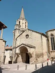 The bell tower was erected over the Chapel of Sainte-Croix between 1486 and 1492. It is 21 metres high and was topped by a spire of 7 metres which was destroyed by cannonballs during the French Revolution in 1794. All the bells except one were shipped to Marseille to "make weapons against the enemies of the nation". The spire was rebuilt in 1983.