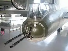 When applied to military aircraft, largely in aviation history books written by British historians, a barbette is a position on an aircraft where a gun is in a mounting which has a restricted arc of fire when compared to a turret, or which is remotely mounted away from the gunner. As such it is frequently used to describe the tail gunner position on bombers such as the Boeing B-17 Flying Fortress,[30] with American aviation books frequently describing the position as a tail gun turret,[31] or simply as a tail gun.[32]